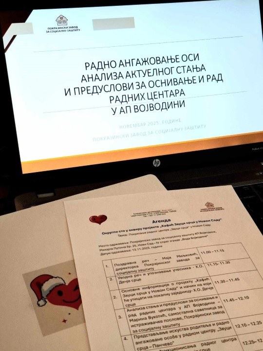 У заједничкој организацији Покрајинског завода за социјалну заштиту и Хуманитарне организације „Дечије срце“ из Београда 13. новембра је одржан округли сто на тему покретања радног центра кафић „Звуци срца“ у Новом Саду. Овај радни центар јединствен је у Србији. Његовим отварањем омогућиће се особама са инвалидитетом да сами разбијају предрасуде о себи и покажу другима да нису терет заједнице већ њени активни чланови. Инклузија особа са инвалидитетом није само питање социјалне правде или испуњавања законских обавеза, то је темељ истински праведног, развијеног и хуманог друштва, где свака особа без обзира на своје способности, има једнаке шансе, могућности и подршку да живи самостално, активно учествује у свим сферама живота и оствари свој пуни потенцијал.