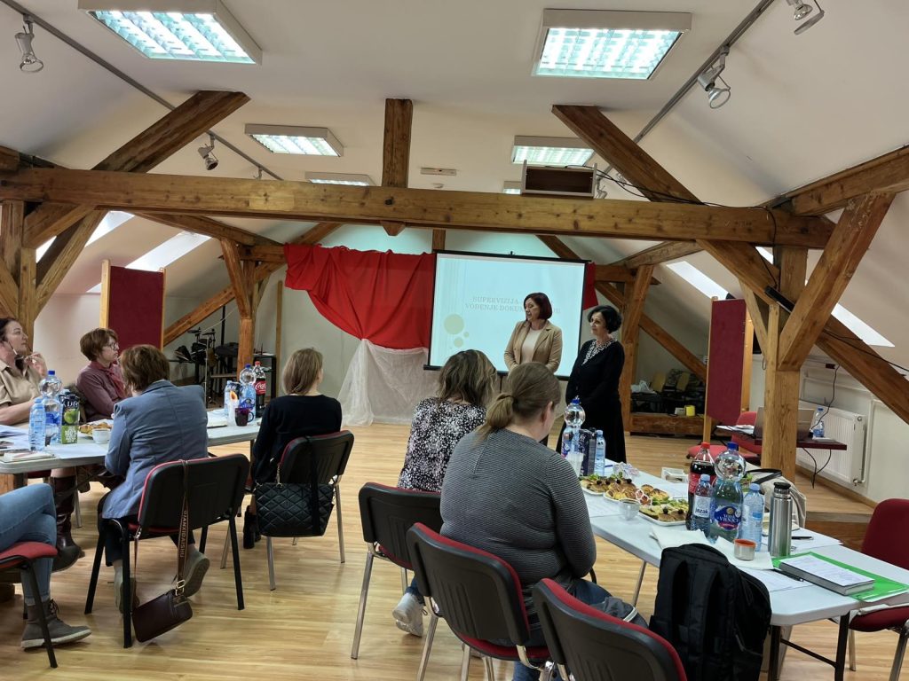 Супервизорка Верица Перуничић је у првом делу стручног скупа презентовала на дату тему уз сликовит приказ примене индивидуалног и групног супервизијског рада, у наставку су супервизорке имале прилику да размене искустав и изазове који се односе на вођење супервизијске документације о супервизијском процесу.