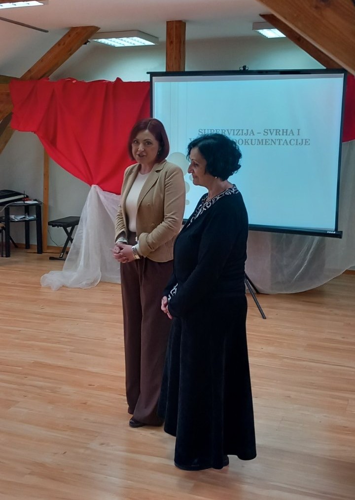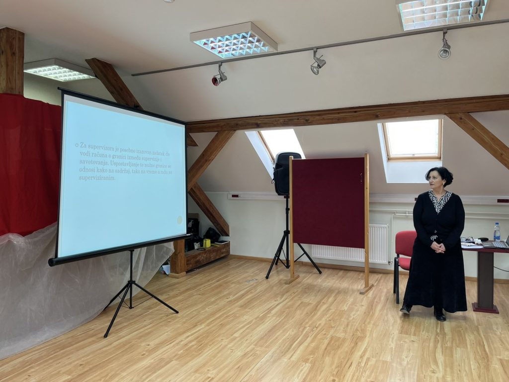 Супервизорка Верица Перуничић је у првом делу стручног скупа презентовала на дату тему уз сликовит приказ примене индивидуалног и групног супервизијског рада, у наставку су супервизорке имале прилику да размене искустав и изазове који се односе на вођење супервизијске документације о супервизијском процесу.